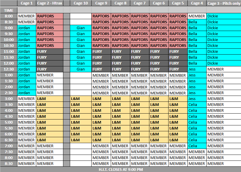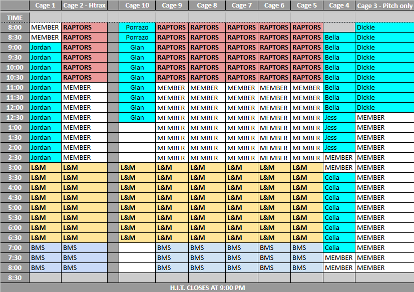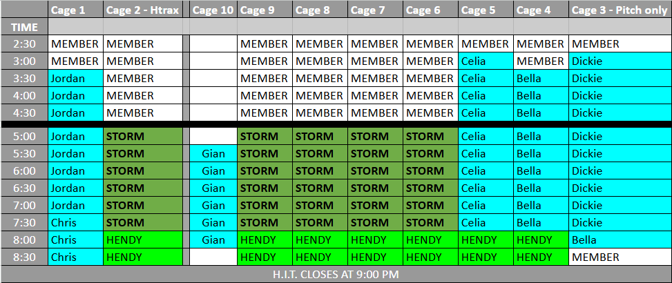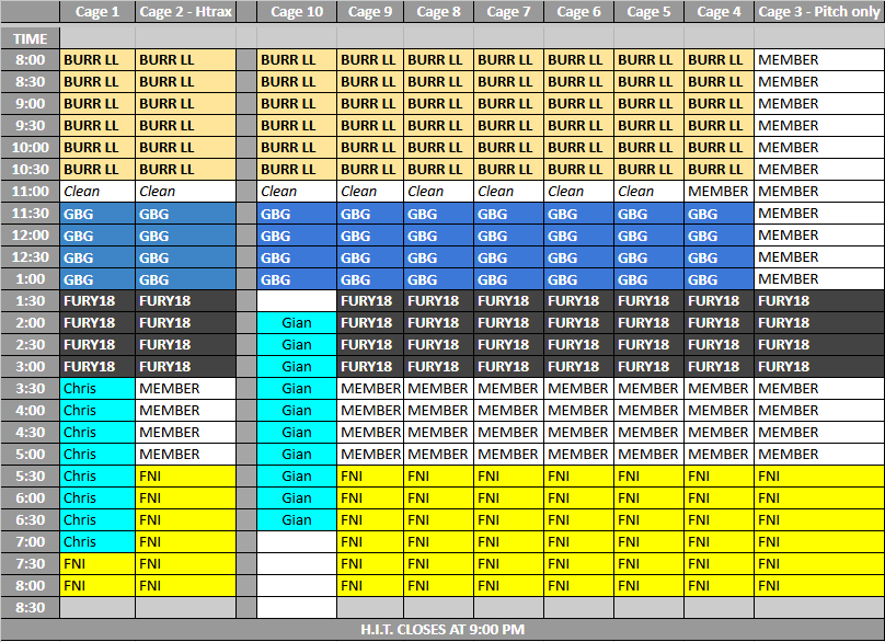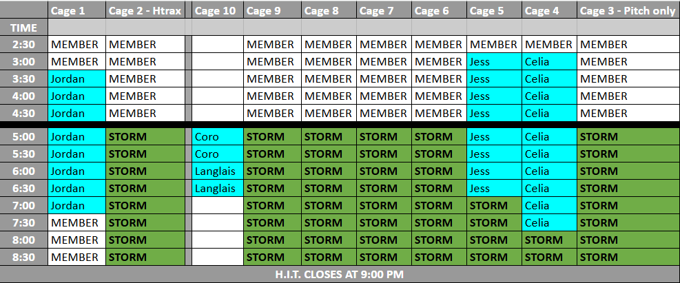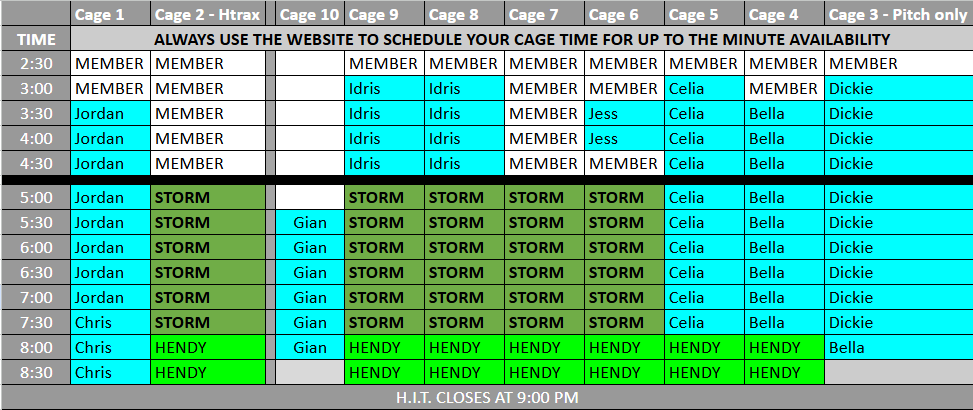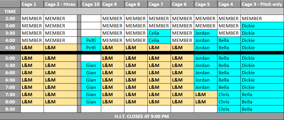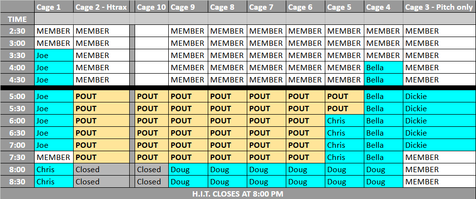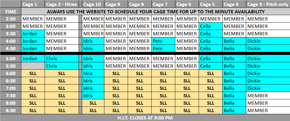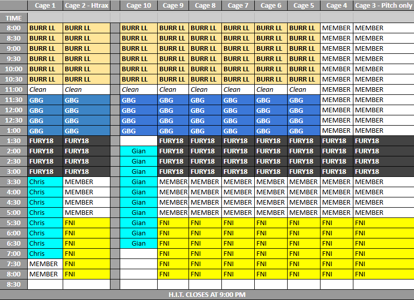 This is a PRIVATE, secured facility. Scheduling through the Cager website is reserved for active softball members only; non-members will not be granted building access. Non-member tunnel reservations are requested by emailing info@hitcenterofri.com. Reservations are subject to availability.